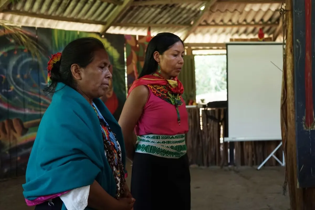 Entre los muchos riesgos se cuentan el reclutamiento forzado y la esclavitud, además de la extendida violencia de género de la que siguen siendo víctimas, explica Anabela Mutis Vallejo, abogada de Tejedoras de Vida. Las lideresas ambientales son estigmatizadas como enemigas del desarrollo para desacreditarlas. “Cuando las mujeres tienen que trabajar en el territorio, ejerciendo liderazgos femeninos, se exponen mucho más”, enfatiza.